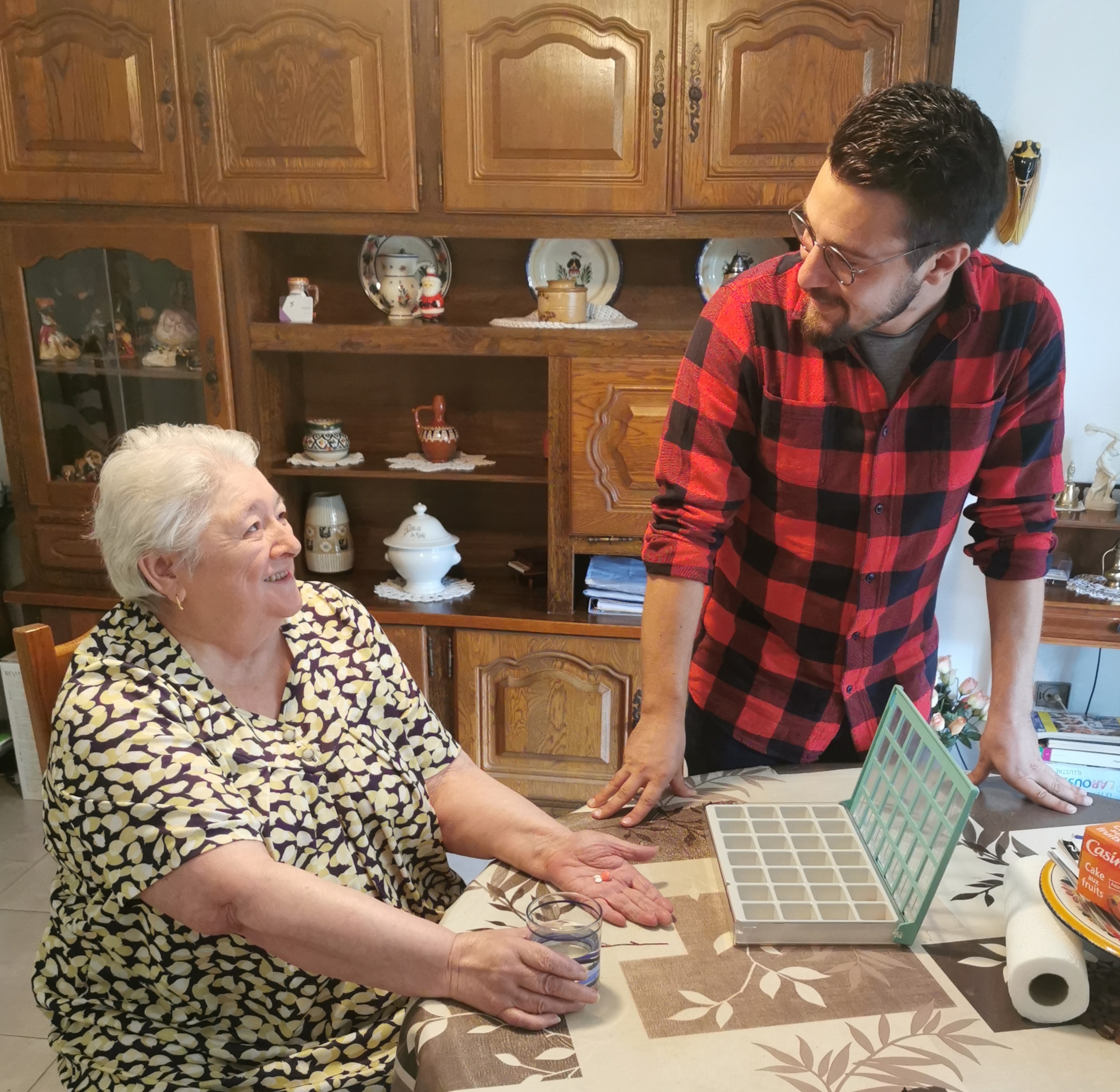 - Aide à la personne : courses, aide à l'habillage ou à la préparation du repas, aide au change, surveillance à la prise des traitements...